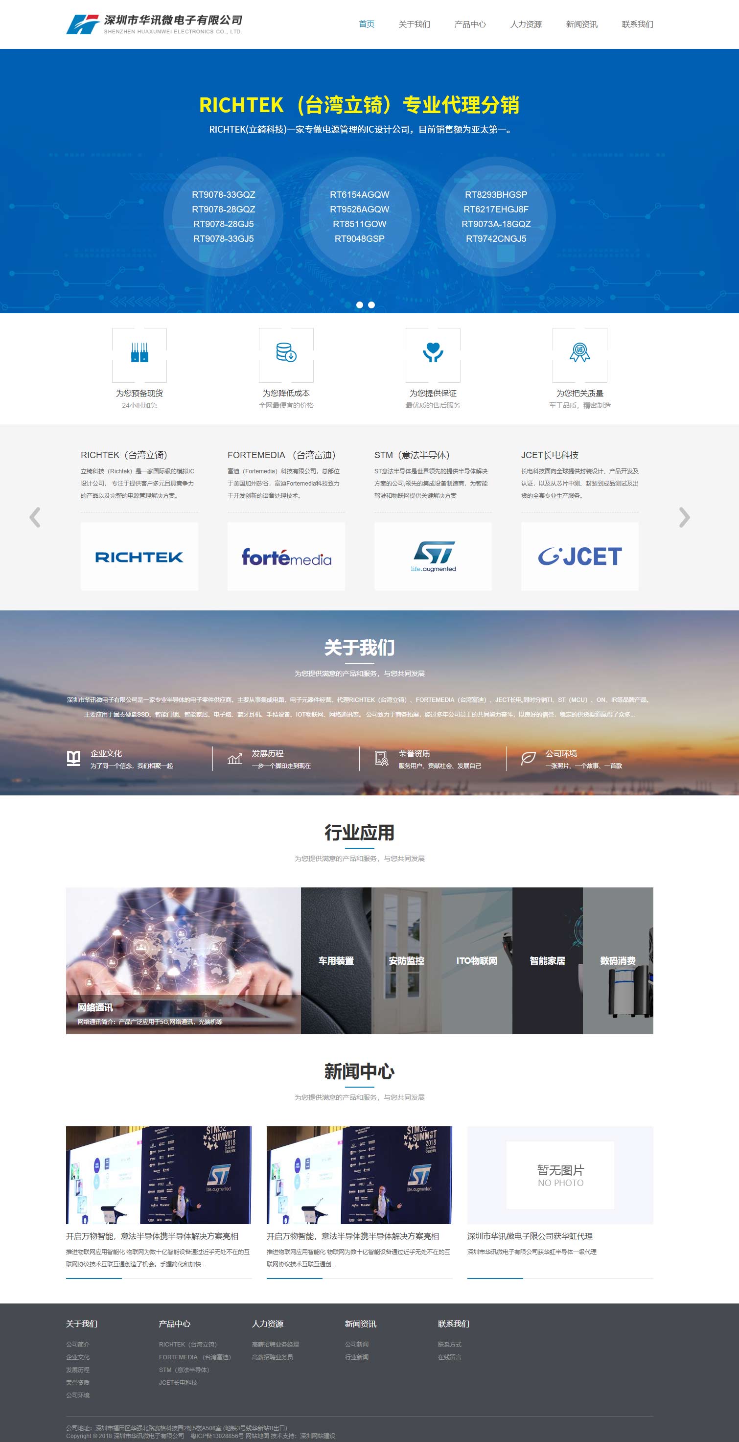 深圳網(wǎng)站建設(shè)公司【創(chuàng)絡(luò)】在2018年,以超級實惠的低價格為深圳市華訊微電子有限公司制作了網(wǎng)站,整個網(wǎng)站以藍色為主色調(diào),給人以科技又不失清爽的視覺感受。