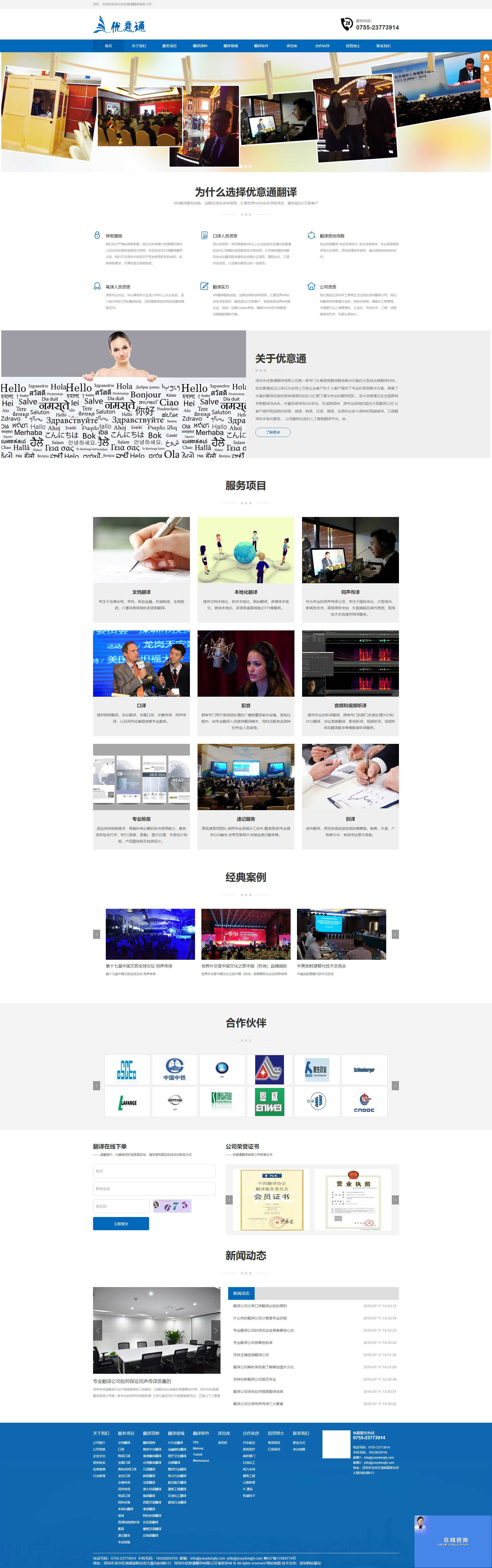 深圳市優(yōu)意通翻譯有限公司是一家專門從事語言翻譯服務(wù)解決方案的大型綜合類翻譯機(jī)構(gòu)。自優(yōu)意通成立以來已為全球上萬家企業(yè)客戶和個人客戶提供了專業(yè)的語言解決方案,具備了豐富的翻譯經(jīng)驗和擁有雄厚的的實(shí)力匯聚了最為專業(yè)的翻譯團(tuán)隊,至今優(yōu)意通已在全國擁有專職翻譯百余名,外籍母語譯員600多名,形成跨語種、跨專業(yè)領(lǐng)域的國內(nèi)大型翻譯公司,為客戶提供高品質(zhì)的英語、俄語、韓語、日語、德語、法語和眾多小語種的高端筆譯、口語翻譯和本地化服務(wù)。在設(shè)計這個網(wǎng)站的時候主要考慮的是網(wǎng)站的翻譯風(fēng)格設(shè)計。