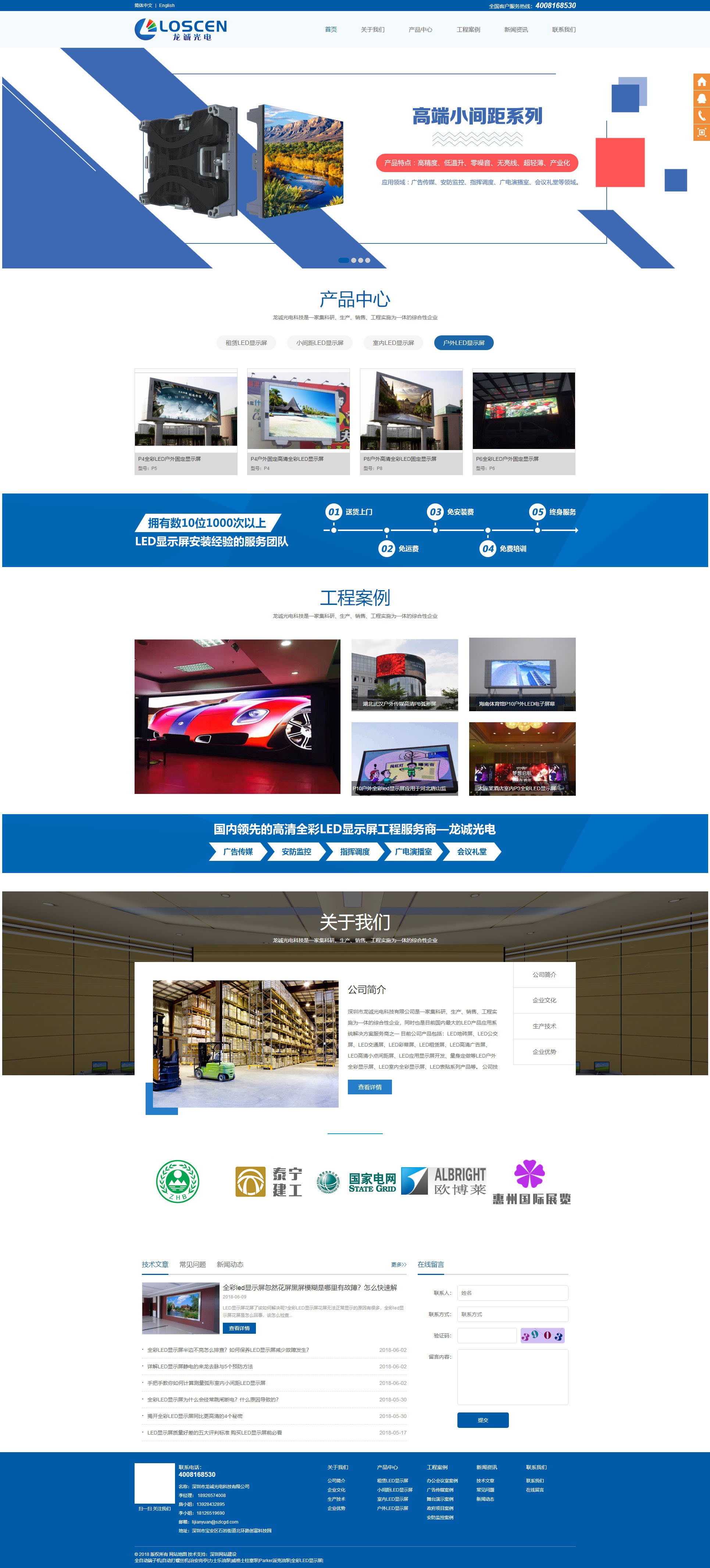 深圳市龍誠(chéng)光電科技有限公司是客戶(hù)介紹客戶(hù)的,還沒(méi)進(jìn)行面談已經(jīng)選擇公明創(chuàng)絡(luò)科技公司進(jìn)行設(shè)計(jì),該網(wǎng)站采用是營(yíng)銷(xiāo)型風(fēng)格設(shè)計(jì),主要以科技藍(lán)為主,首頁(yè)頁(yè)面內(nèi)容豐富。是電腦板加手機(jī)版數(shù)據(jù)同步,集成在一起的網(wǎng)站后臺(tái)技術(shù),其中手機(jī)版是采用MIP技術(shù)。