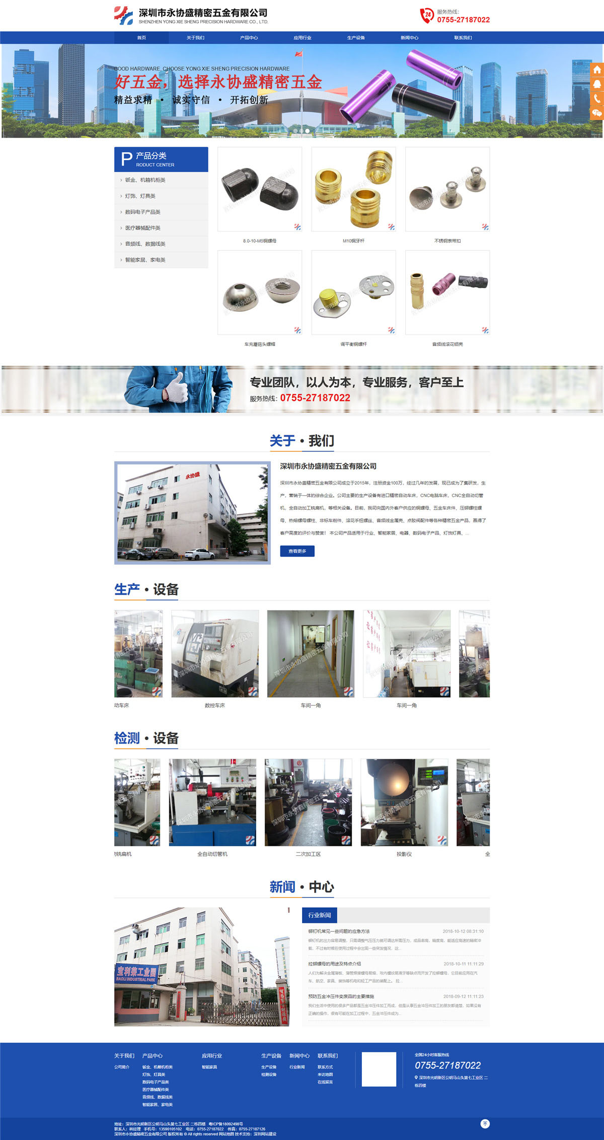 深圳永協(xié)盛網(wǎng)站在設(shè)計的時候,客戶提出了自己的建議,創(chuàng)絡(luò)科技設(shè)計師高校配合客戶的意見進(jìn)行修改,網(wǎng)站風(fēng)格以藍(lán)色為基調(diào),首頁就展示出客戶想要的主要板塊,如公司簡介,產(chǎn)品,設(shè)備等主要內(nèi)容。