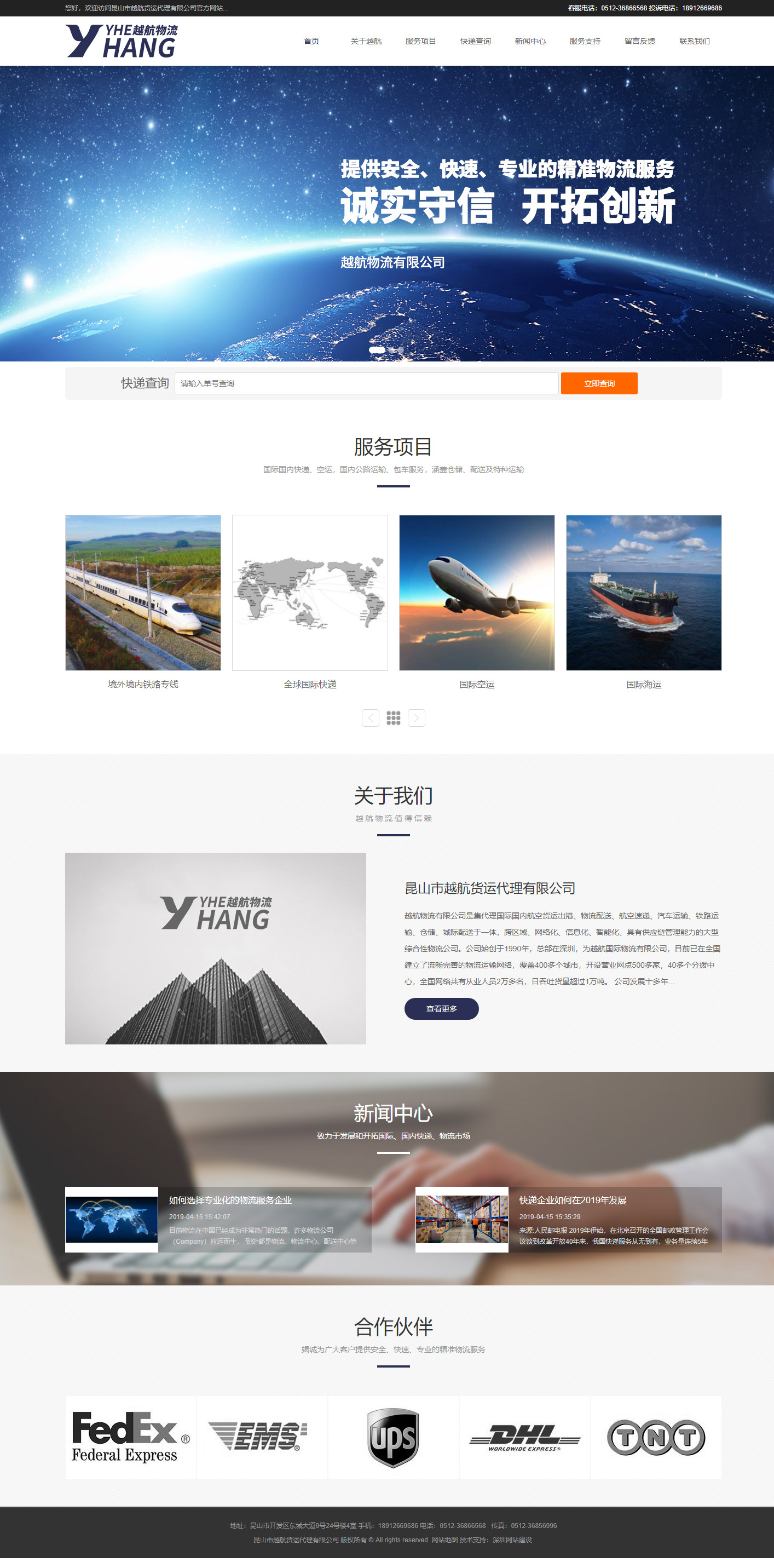 昆山市越航貨運(yùn)代理有限公司是客戶介紹的一位外地企業(yè),所以在合作的時(shí)候已經(jīng)建立了信任基礎(chǔ),很快就與創(chuàng)絡(luò)科技網(wǎng)絡(luò)公司達(dá)成合作。該網(wǎng)站是一家做物流快遞的展示性風(fēng)格網(wǎng)站。