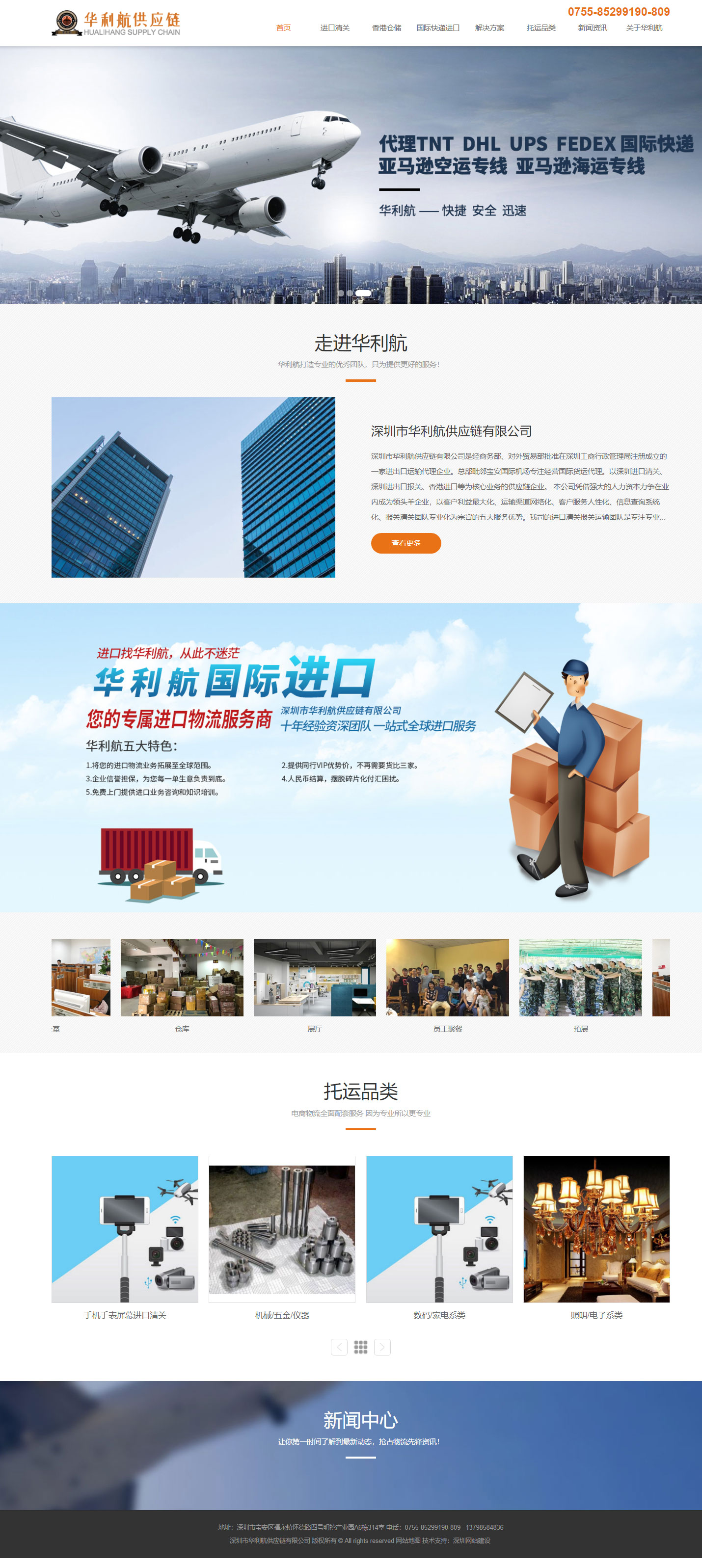 華利航供應(yīng)鏈公司與創(chuàng)絡(luò)科技的合作是通過一個朋友介紹,再沒有任何見面的情況下就簽訂了合作協(xié)議,并一次性付款,網(wǎng)站風(fēng)格是采用橙黃色風(fēng)格,欄目設(shè)計也是按照客戶的要求進行重置。