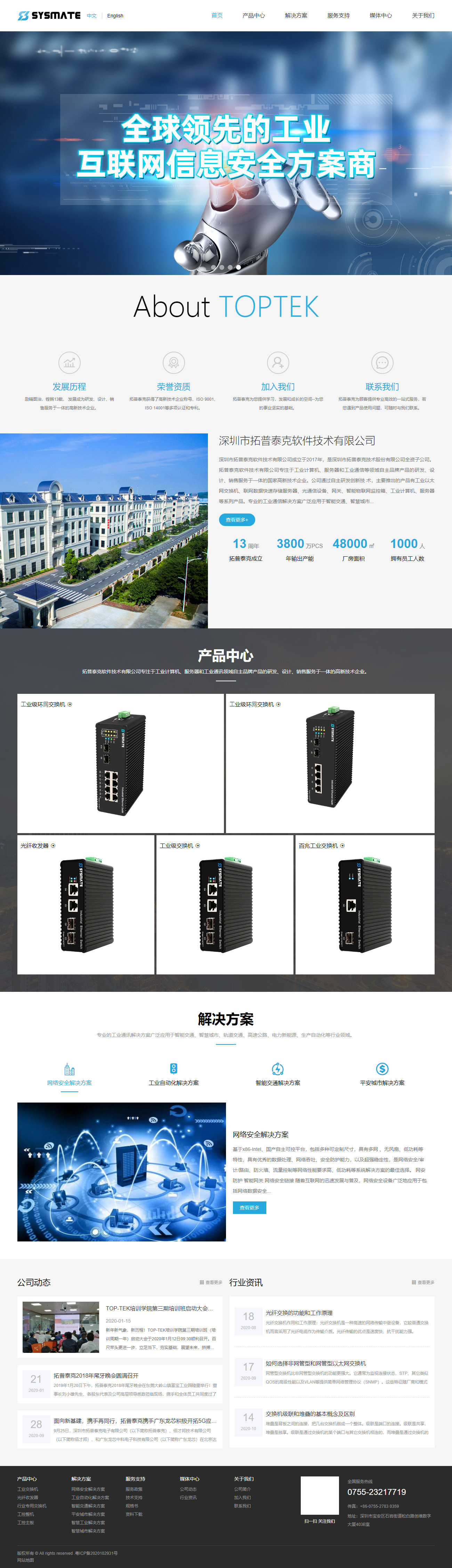 深圳市拓普泰克軟件技術(shù)有限公司成立于2017年,是深圳市拓普泰克技術(shù)股份有限公司全資子公司。拓普泰克軟件技術(shù)有限公司專注于工業(yè)計(jì)算機(jī)、服務(wù)器和工業(yè)通信等領(lǐng)域自主品牌產(chǎn)品的研發(fā)、設(shè)計(jì)、銷售服務(wù)于一體的國(guó)家高新技術(shù)企業(yè)。公司通過自主研發(fā)創(chuàng)新技術(shù),主要推出的產(chǎn)品有工業(yè)以太網(wǎng)交換機(jī)、聯(lián)網(wǎng)數(shù)據(jù)快速存儲(chǔ)服務(wù)器、光通信設(shè)備、網(wǎng)關(guān)、智能物聯(lián)網(wǎng)監(jiān)控箱、工業(yè)計(jì)算機(jī)、服務(wù)器等系列產(chǎn)品。專業(yè)的工業(yè)通信解決方案廣泛應(yīng)用于智能交通、智慧城市、軌道交通、高速公路、電力新能源、安防監(jiān)控,工控,政府等行業(yè)的多個(gè)領(lǐng)域市場(chǎng)。