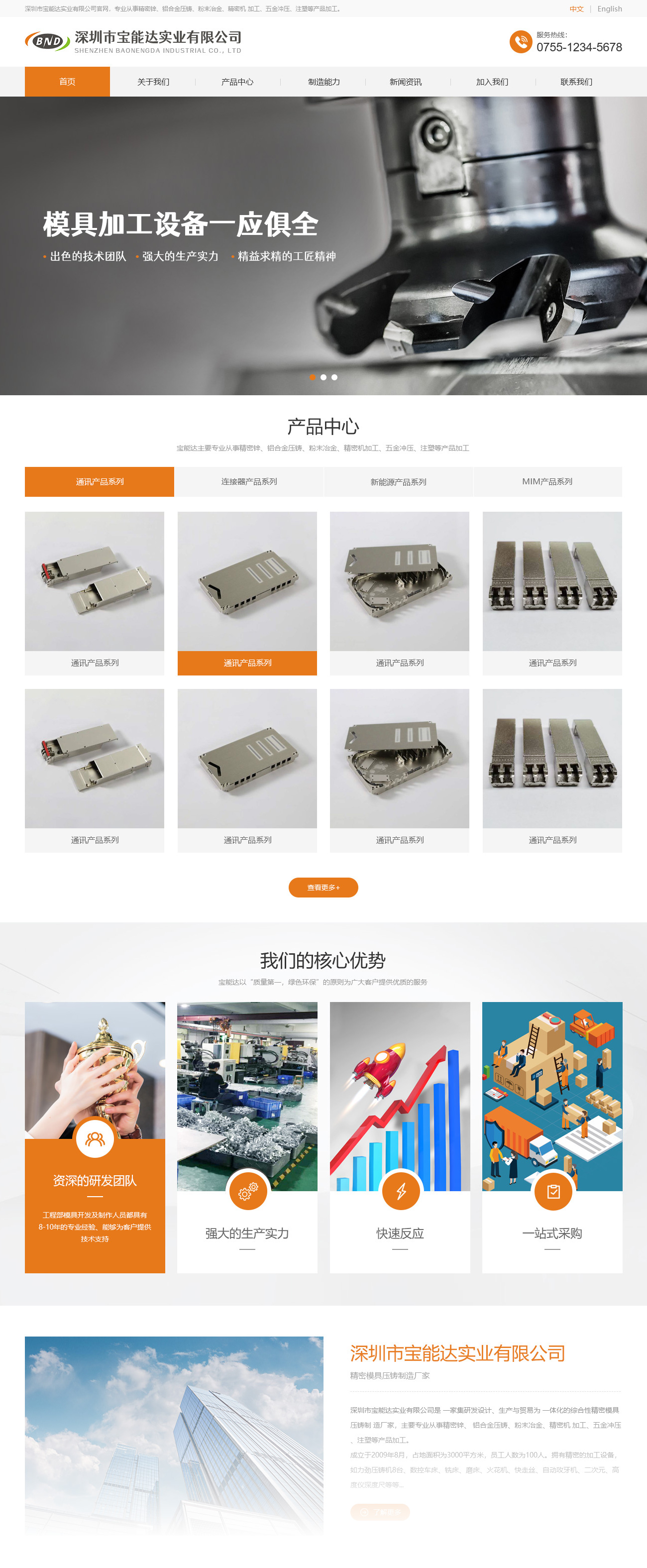 深圳市寶能達(dá)實(shí)業(yè)有限公司網(wǎng)站整個版面內(nèi)容主要是以橙色和淺灰色為主,在于客戶進(jìn)行溝通后,決定采用貴公司logo色為網(wǎng)站色調(diào)進(jìn)行設(shè)計(jì),頁面設(shè)計(jì)注重整體性,通過豐富的信息量和布局,體現(xiàn)了貴公司的專業(yè)實(shí)力,大氣穩(wěn)定,相得益彰的小型標(biāo)志圖案融合在網(wǎng)頁里面,讓整體形象得到提升。