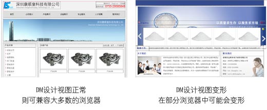 可能大家聽(tīng)說(shuō)過(guò)這樣的一句話:淹死的都是自認(rèn)為很會(huì)游泳的人。這估計(jì)是他們太高估自己的能力去冒險(xiǎn)了吧。作為網(wǎng)站設(shè)計(jì)師的我們是不是也不應(yīng)該高估自己的能力呢?為什么我們初學(xué)DIV+CSS的時(shí)候做出來(lái)的頁(yè)面總是那么的工整而不會(huì)錯(cuò)亂呢?反而到了實(shí)際工作應(yīng)用中卻錯(cuò)誤百出?如上圖所示,在Dreamweaver的設(shè)計(jì)模式下,網(wǎng)頁(yè)布局沒(méi)有變形基本上就沒(méi)有問(wèn)題,而大多數(shù)的情況下,你自己的作品是不是會(huì)像右邊那樣變形而到了最新版的瀏覽器中卻顯示正常呢?創(chuàng)絡(luò)認(rèn)為,這其實(shí)跟游泳的人的心理是一樣的:認(rèn)為自己很厲害而忽略了很多細(xì)節(jié)。有的網(wǎng)站設(shè)計(jì)公司可能會(huì)要求最高效率的實(shí)現(xiàn)網(wǎng)站的重構(gòu),而創(chuàng)絡(luò)卻不是非常認(rèn)同這個(gè)觀點(diǎn),我們對(duì)公司內(nèi)部的設(shè)計(jì)師有一個(gè)最基本的要求:在保證代碼完整的情況下,用最簡(jiǎn)潔的代碼實(shí)現(xiàn)預(yù)設(shè)的功能(如需了解詳情,歡迎致電創(chuàng)絡(luò)了解)。